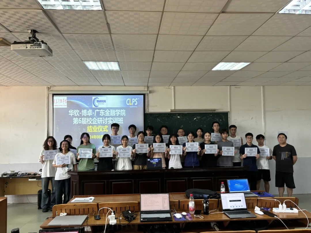 8 月 28 日,互联网金融与信息工程学院举办的“第6届华钦博卓·广金校企研讨实训班”学员完成了近2个月的项目实训后,通过了技术能力测试,顺利结业!