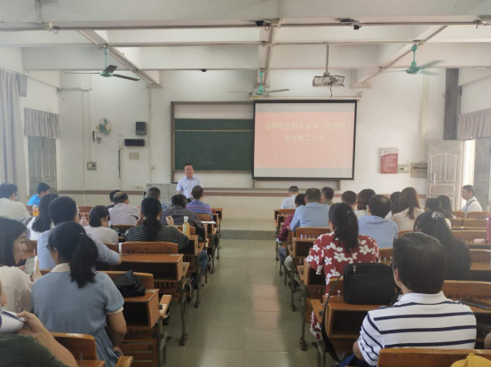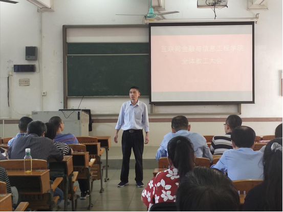 10月27日,买球官网在7栋教学楼101课室召开全体教工大会暨工会会员大会,院党总支书记朱小焱、院长吴炎太教授、副院长钟雪灵、副院长潘章明、副书记丘志君出席了会议,全院教工参加了会议。