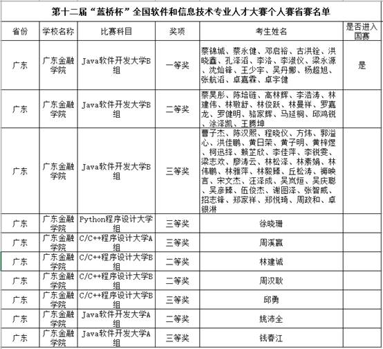 附:第十二届“蓝桥杯”全国软件和信息技术专业人才大赛个人赛省赛名单