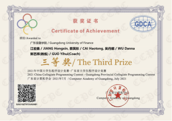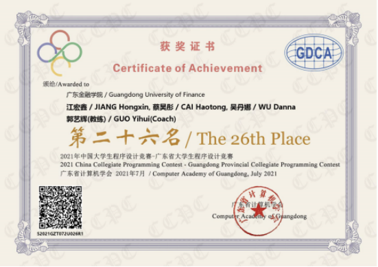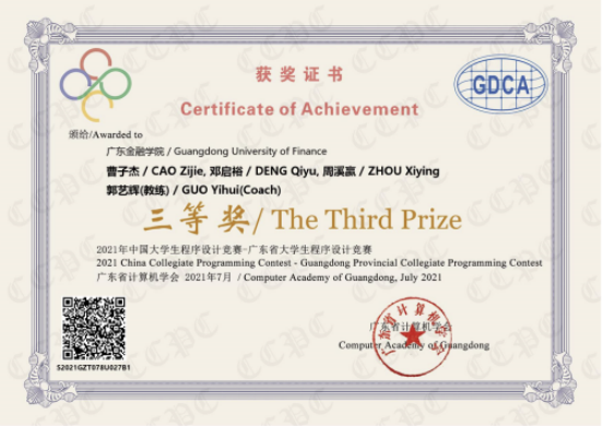 在买球官网郭艺辉博士带队指导下,由买球官网江宏鑫、蔡昊彤、吴丹娜、曹子杰、邓启裕、周溪嬴等6名学生组成的ACM团队参加了比赛。比赛期间,6名队员分成三组参赛,各组队员们沉着应对、专注解题,经过5个小时的紧张角逐,最终获得了两个“三等奖”和一个“第二十六名”的优异成绩,充分展现了买球官网学子扎实的专业知识和熟练的专业技能,也是买球官网坚持“以赛促学”所取得的最新成果。