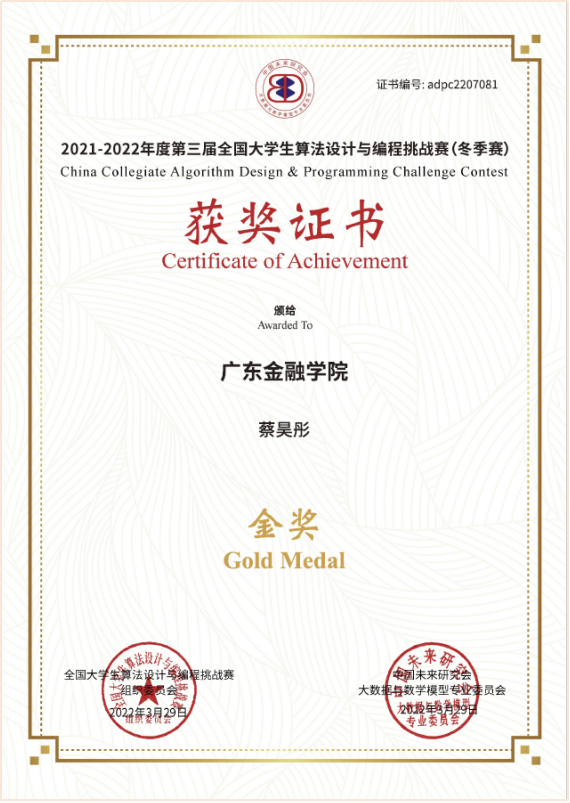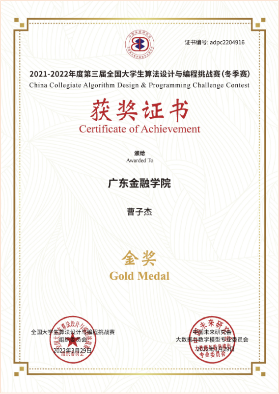 3月27日,2021-2022年度第三届全国大学生算法设计与编程挑战赛(冬季赛)在线上进行,来自北京大学、清华大学、上海交通大学、复旦大学等761所高校共6220名选手参加了竞赛,买球官网互联网金融与信息工程学院郭艺辉博士、温展杰老师率队参加了比赛,获得了“三金八银一铜”的优异成绩。