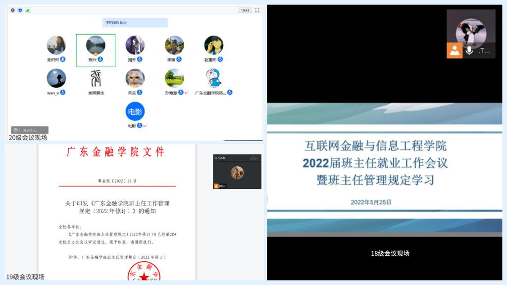 2022年5月25日,买球官网在腾讯会议平台分年级组织班主任专题学习学校新修订的《班主任工作管理规定》,校本部各年级辅导员、班主任参加了本次学习会,会议分别由各年级级长冯晓骏老师、钟培权老师、陈兴老师主持。