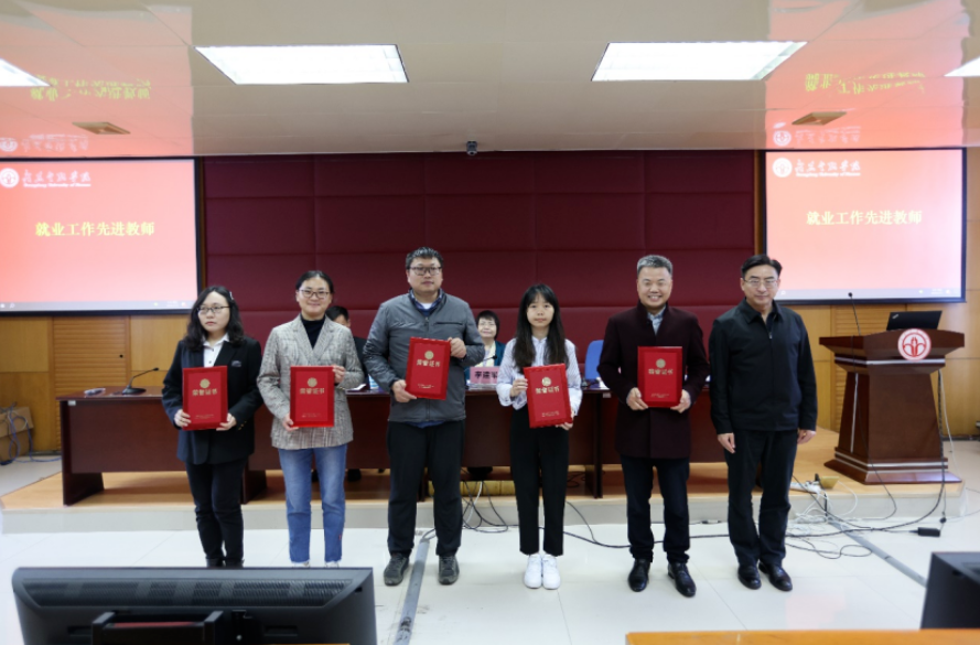 钟培权老师(左三)荣获2023年就业工作先进个人