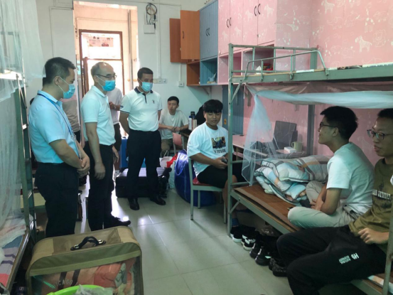 图2:校党委副书记张欣(左二)莅临学生宿舍与新生亲切交谈
