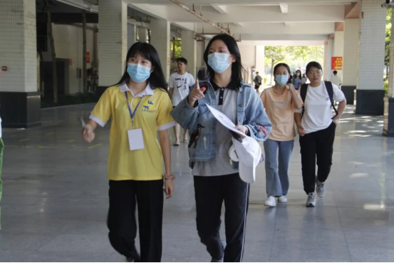 图4:迎新志愿者陪同新生赴迎新大本营办理报到手续