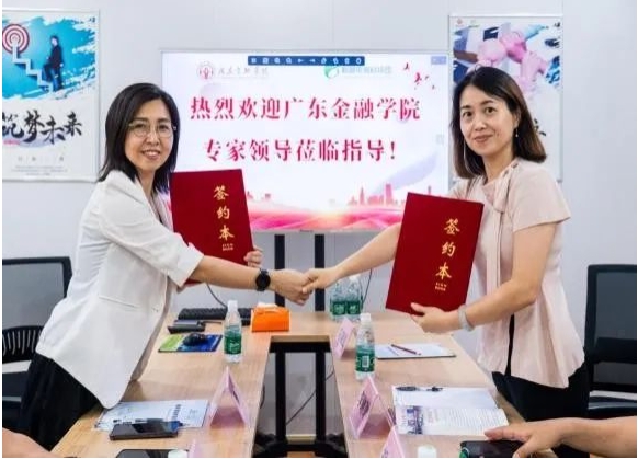 随后,一行人来到中山市格林电商科技园,就共建校企合作事宜进行交流,参观了园区核心区与入驻商户,科技园总经理陈燕介绍了园区“电商集聚地+生活配套服务”双轮驱动的产业特色,以及近年来孵化创新团队的成功经验,带领我们实地走访了园区内的电商企业,了解目前电商行业资讯及走势,新媒体与电商如何结合应用等。在交流过程中,十大买球的正规网站党委副书记李琳琳表示,一直以来学院积极推动教学与实践深度融合,希望能与格林电商科技园在人才培养、科研实践、实习就业等方面开展多层次、多领域合作。交流会上,双方签署了校企党建实习就业共建协议,将“学用结合、产教融合”推向新高度,未来双方将围绕“金融+电商+科技”的交叉融合,持续深化合作,共同培养更多符合时代需求的复合型人