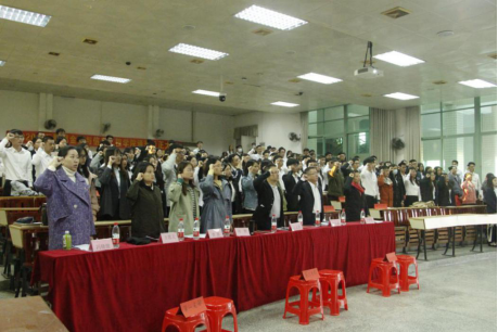 会上,各通表对象依次上台宣读本人的入党志愿书,各转正对象依次上台宣读本人的入党转正申请书。在聆听完所有对象的宣读后,学生党支部全体正式党员本着严谨认真的态度对本支部的通表以及转正对象进行投票表决。经一致表决:28名发展对象被通表为预备党员,29名预备党员转正为正式党员。接着,在陈婉琛同志领誓下,全体通表对象宣读了入党誓词和与会师生党员重温了入党誓词。