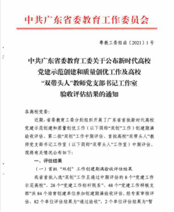 近日,从《中共广东省委教育工委关于公布新时代高校党建示范创建和质量创优工作及高校“双带头人”教师党支部书记工作室验收评估结果的通知》获悉,十大买球的正规网站互联网金融与信息工程学院顺利通过首批“全省党建工作标杆院系”项目创建期满验收(全省26家之一)。
