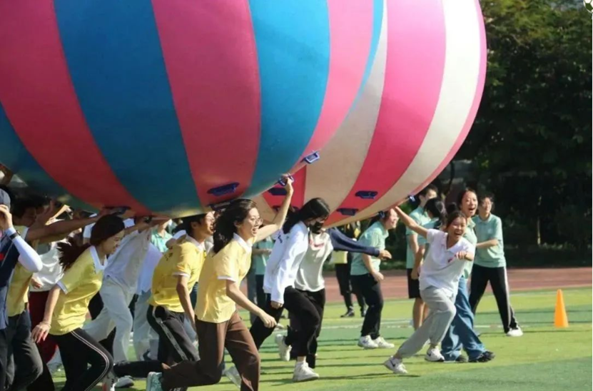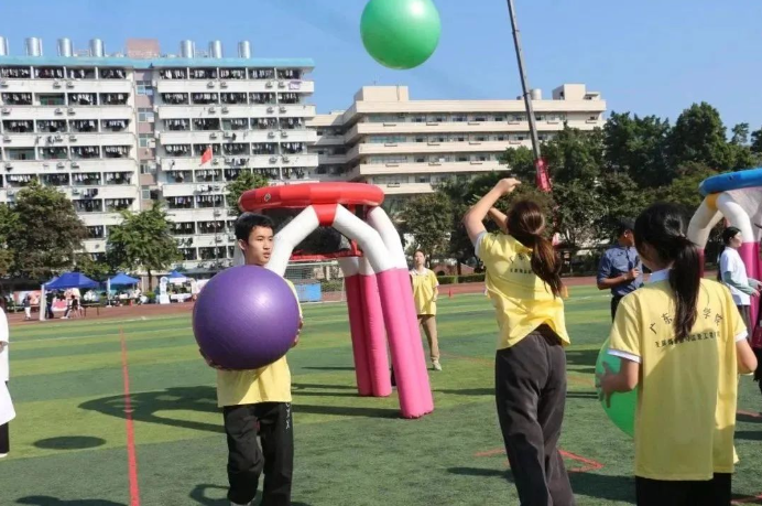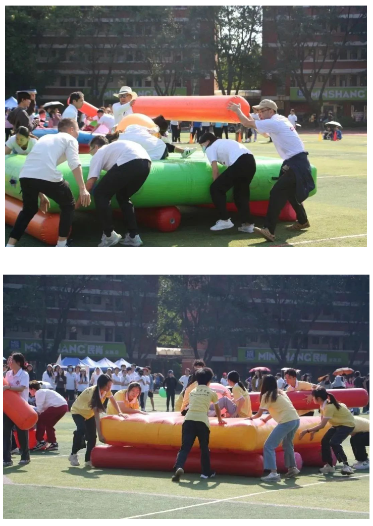 本次趣味运动会分为两个赛道:教工组和学生组。共有运转乾坤、猛龙过江、乘风破浪、超级投篮等4个比赛项目,每个项目均需队员们相互协助配合才能完成,让全校师生在体验快乐运动的同时,提升大家的团队凝聚力,增强彼此之间的交流合作。