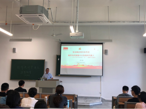 2021年9月26日,互联网金融与信息工程学院党总支书记朱小焱前往清远校区为2021级新生讲授新学期“思政第一课”,辅导员谭雨婷、2021级信息管理与信息系统专业100多名新生聆听了课程。