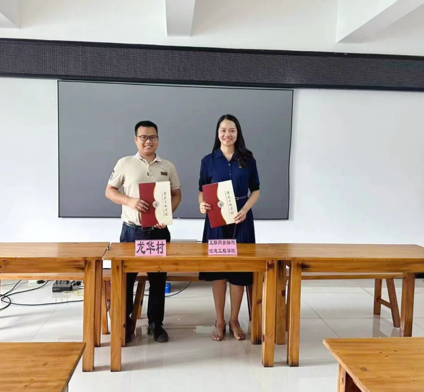 院党委副书记蔡秋华与龙华村村支书刘子科签署大学生社会实践合作协议