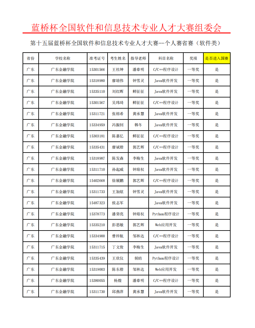 附:十大买球的正规网站第十五届“蓝桥杯”全国软件和信息技术专业人才大赛个人赛省赛名单